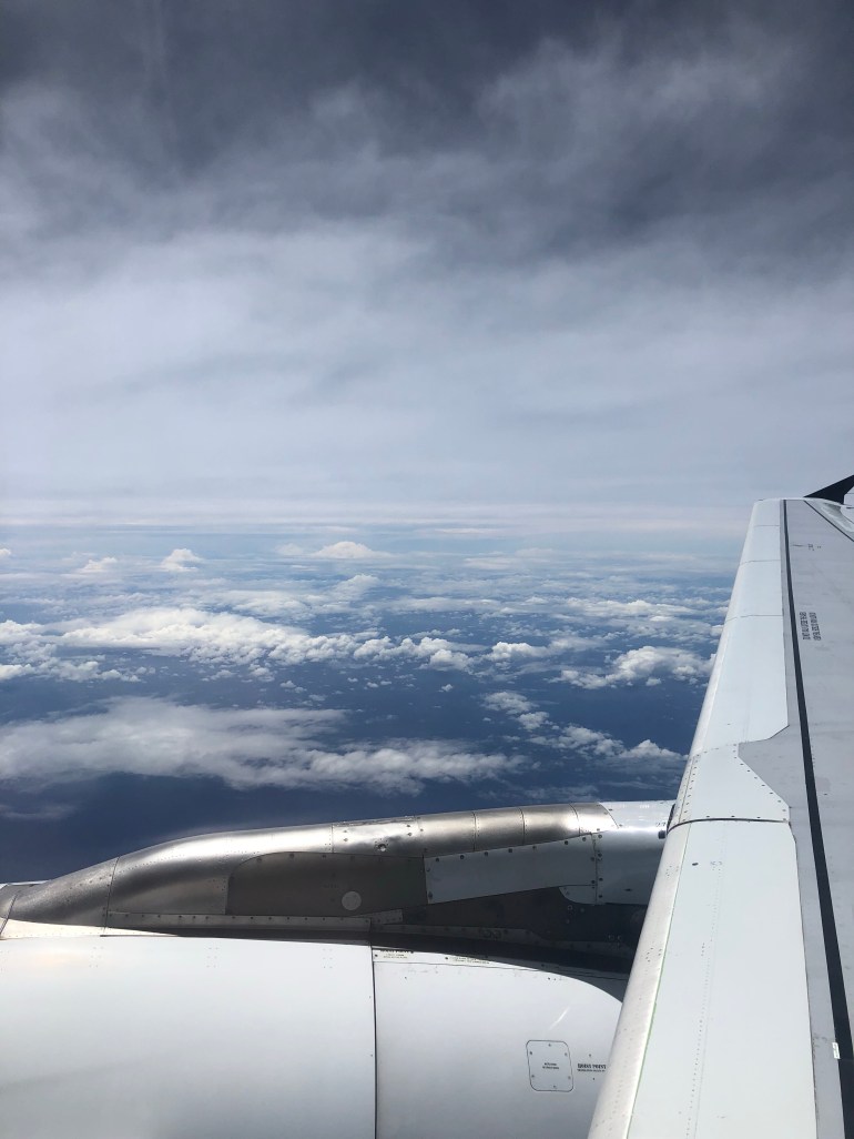 It felt like kind of a relief to get on the plane last Tuesday after the preceding weeks of (sometimes organised) chaos with moving out of the house and packing everything up and making last-minute preparations, often late into the night.  The flight itself was somewhat of a triumph, with Reggie and Lucy about as well-behaved (and quiet!) as one could ask of them.