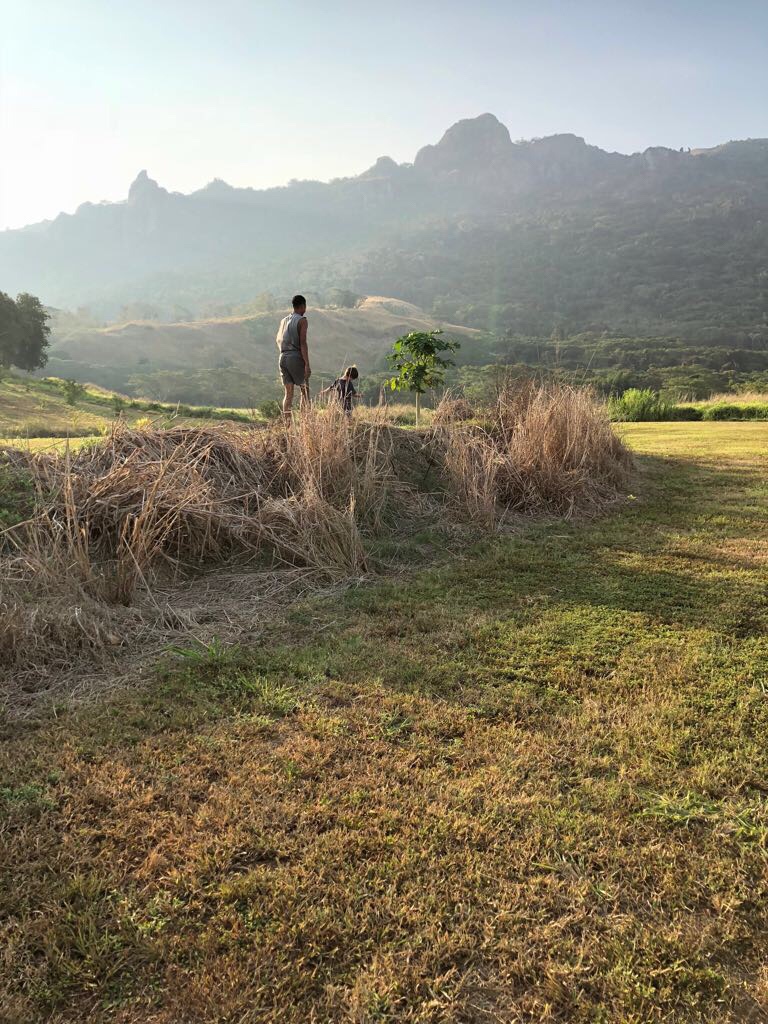And now school has begun again and so we spend our days adventuring around campus in various ways; someone put up a tyre swing in the mango tree outside our house while we were away, and our neighbours with seven kids moved to a bigger house on the other side of campus (which Reggie can find his way to independently, we’ve discovered, although we’ve now told him he ought not to go by himself – “But Mummy I will be careful! Yes! I will walk on the grass beside the road so cars will not hit me if they come! Yes!”) and there’s always the big volleyball sandpit.