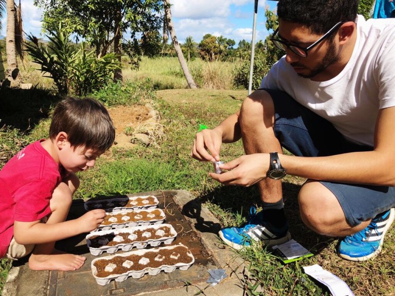 One good thing about the rain though is that it will save us watering our garden a bit. A month or so ago we planted some seeds in egg cartons with the kids, and they had the time of their lives watering them (and mostly themselves) with a spray bottle. Since they got big enough to plant out in the garden, Brent used a nail to punch holes in the lid of a water bottle after the fashion of a watering can so we’ve used that instead to give the tiny plants a little flood a couple of times a day, but the ground dries out so fast in this heat. About half of the seedlings that sprouted survived the transfer to the garden so hopefully we will have some zucchinis and apple cucumbers before we leave in November.